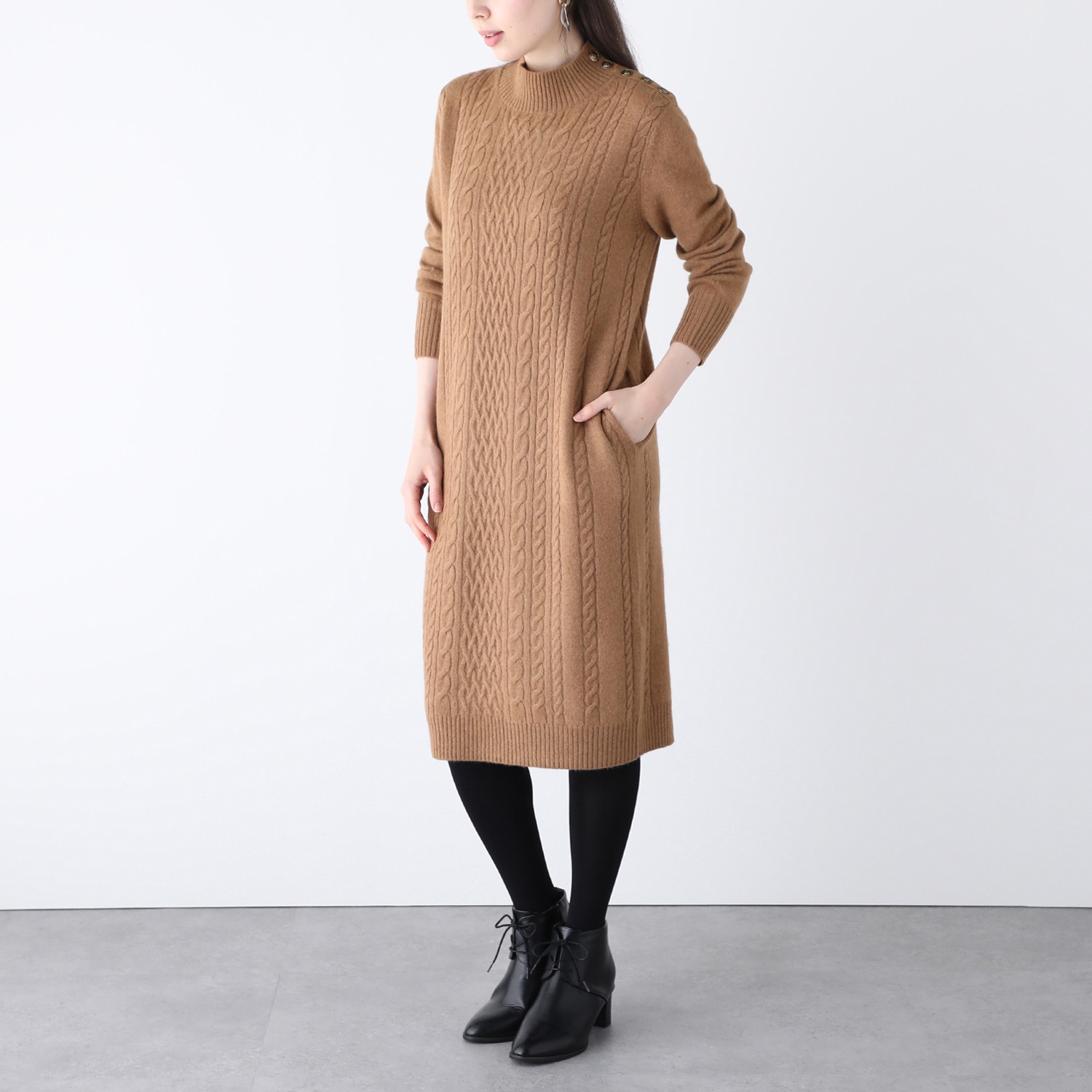 商品詳細 ざっくりとしたケーブル編みと たぽっとした袖が女性らしいロングワンピース 袖のケーブル編みが優しく、温もりのある生地感。 ドロップショルダーになっているので着るだけで自然とこなれ感が出ます。 程よくゆとりある身幅と、長めの